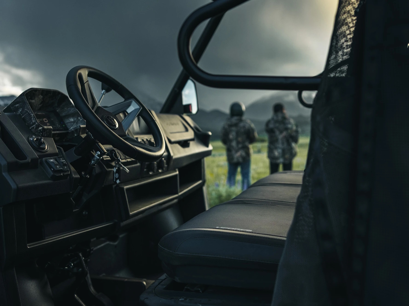 - Two ergonomic bench seats mean you can bring the whole crew—no compromises. Fold-up center console, underseat storage, and integrated cupholders make it ready for long hauls and longer days.