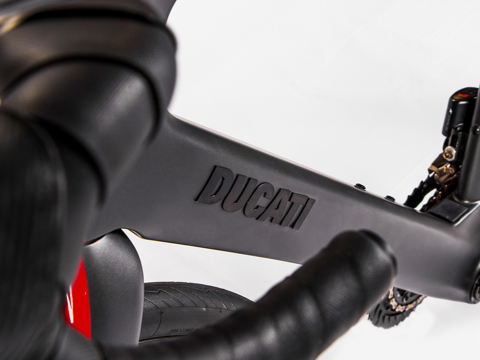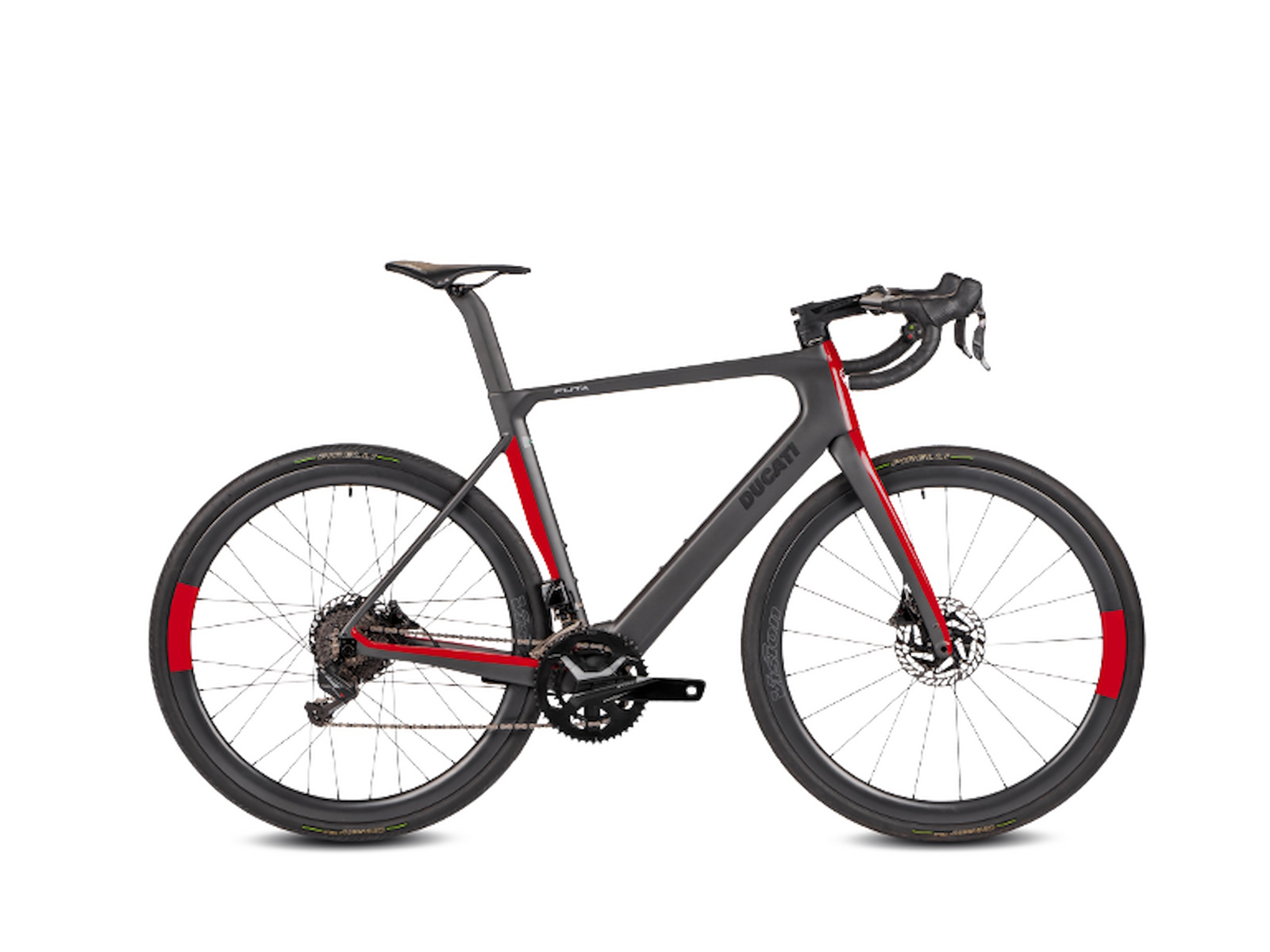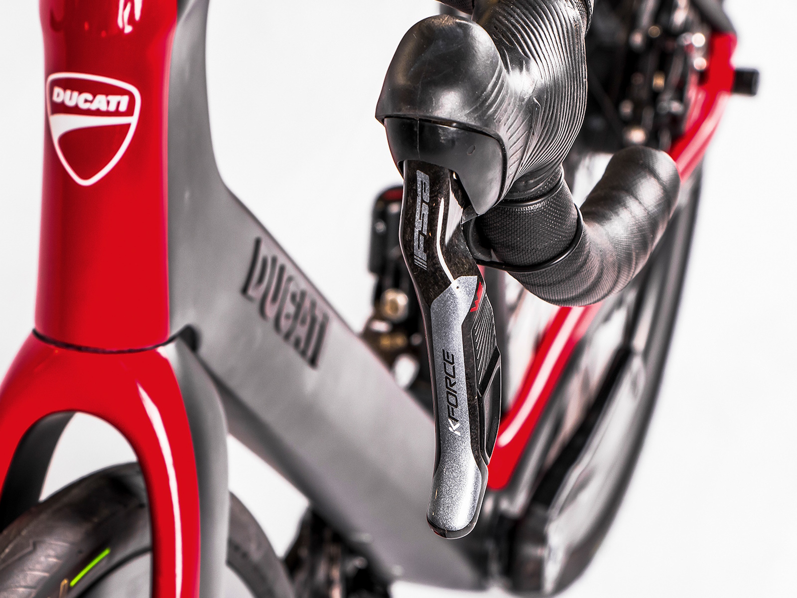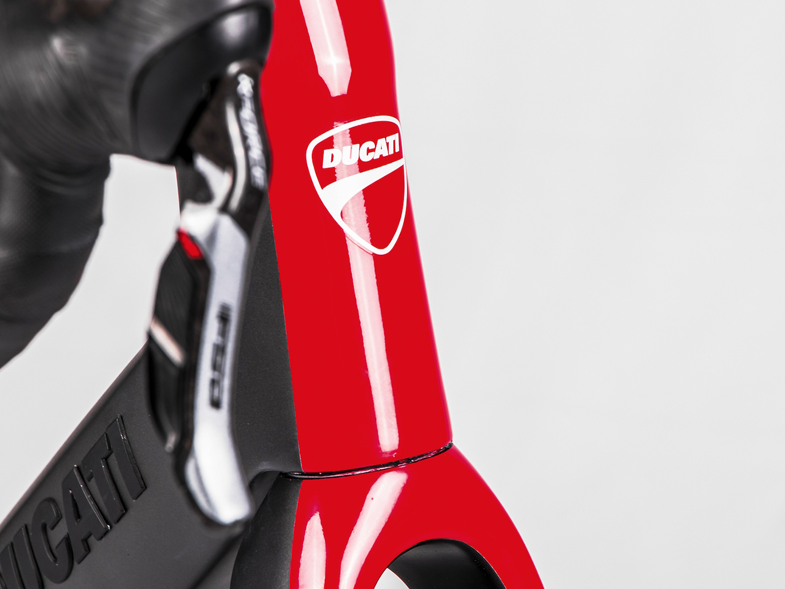 The compact rear stay, with lowered sheaths, makes the bike comfortable, while generating less aerodynamic drag. The rear triangle is rigid laterally, precisely by virtue of the choice of the position of the sheaths and favours a better transmission of power to the wheel, as well as increasing the responsiveness of the bike. Down tube, seat post and fork sliders are expertly profiled and their reliefs are highlighted by the play of colors of the livery which sees grey and black as the main colors with accents in Ducati Red.