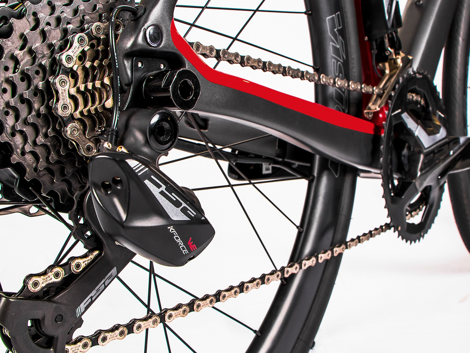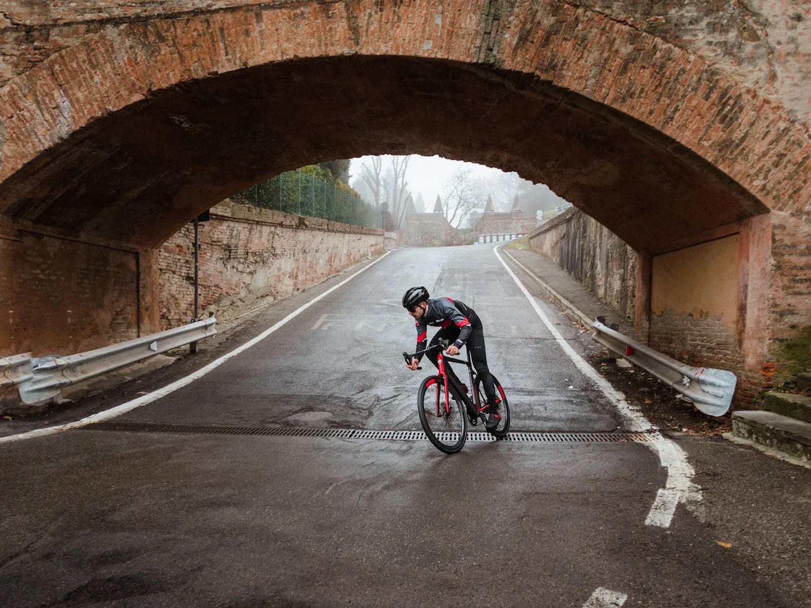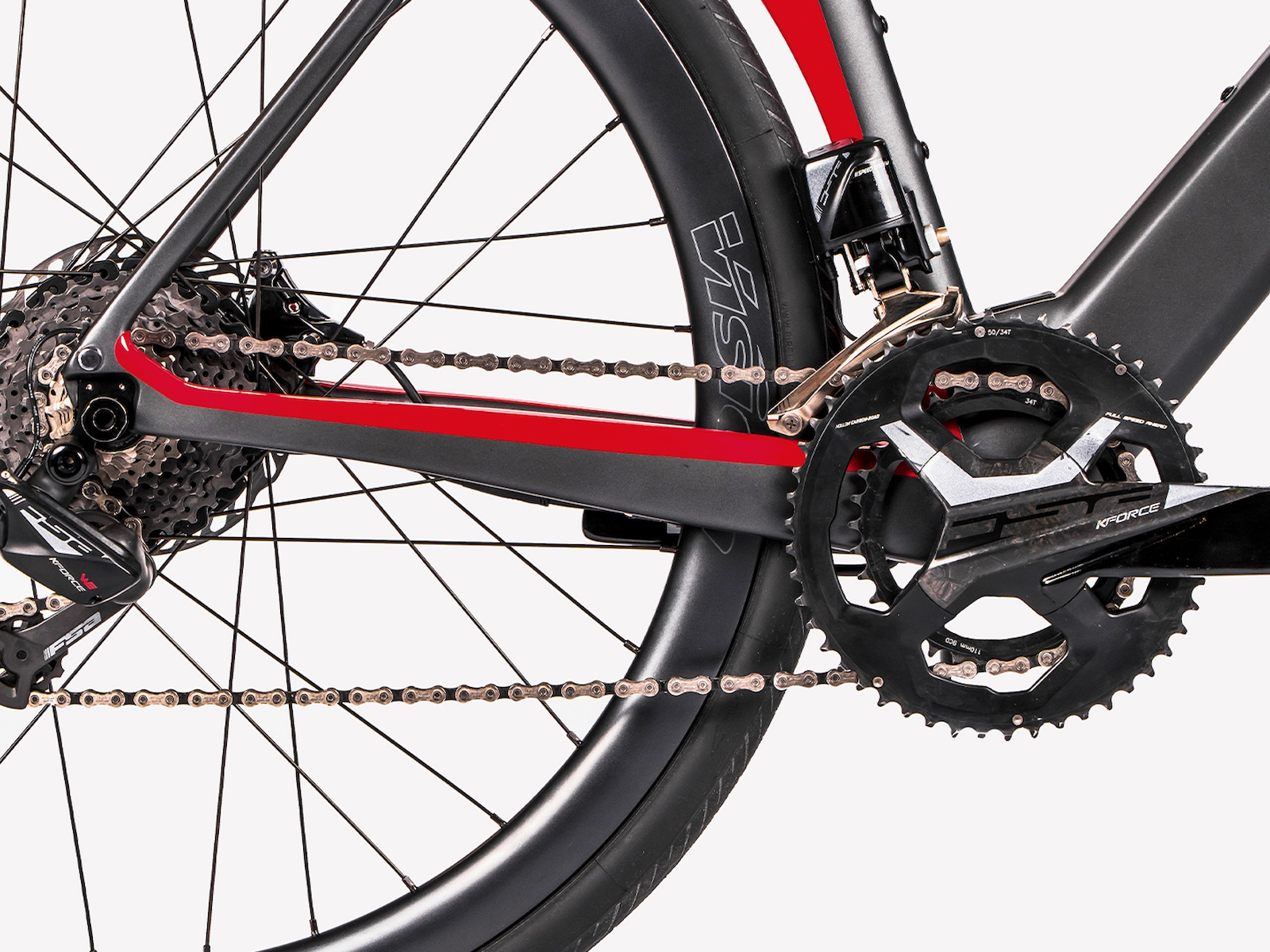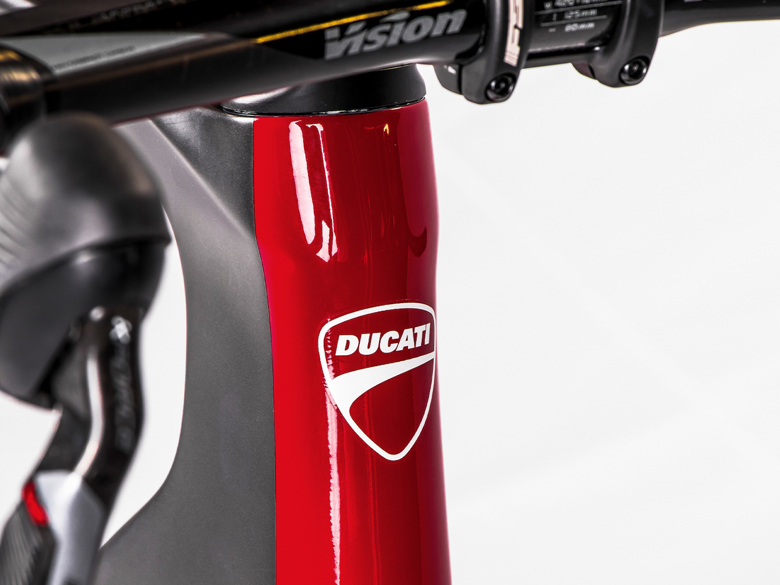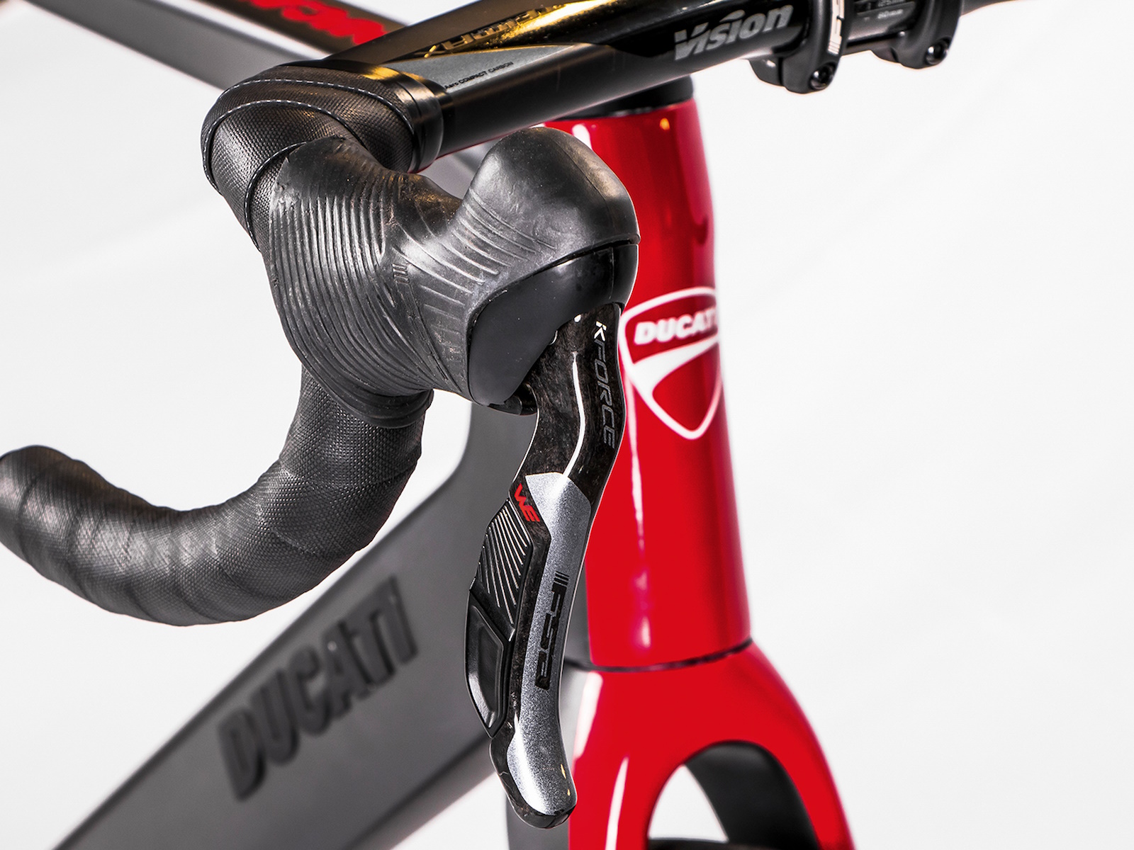 The compact rear stay, with lowered sheaths, makes the bike comfortable, while generating less aerodynamic drag. The rear triangle is rigid laterally, precisely by virtue of the choice of the position of the sheaths and favours a better transmission of power to the wheel, as well as increasing the responsiveness of the bike. Down tube, seat post and fork sliders are expertly profiled and their reliefs are highlighted by the play of colors of the livery which sees grey and black as the main colors with accents in Ducati Red.