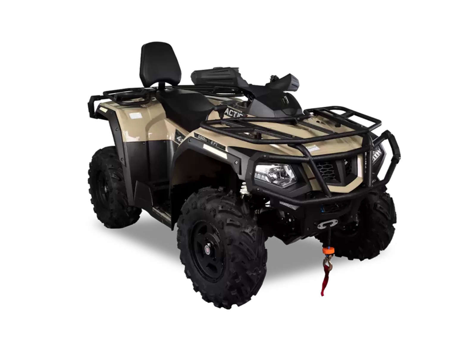 The full-size Tactic 550 EPS 2-Up comes equipped with a 4-Stroke OHV 546cc Single Cylinder EFI Engine and 4-Wheel drive giving you the ability to take on the toughest trails. The Dual A-Arm Nitrogen Assisted Shocks give the Tactic 550 a smooth unforgettable ride. The Tactic’s front and rear cargo racks and a 2500LB Winch make it the right choice for your off-road adventure.