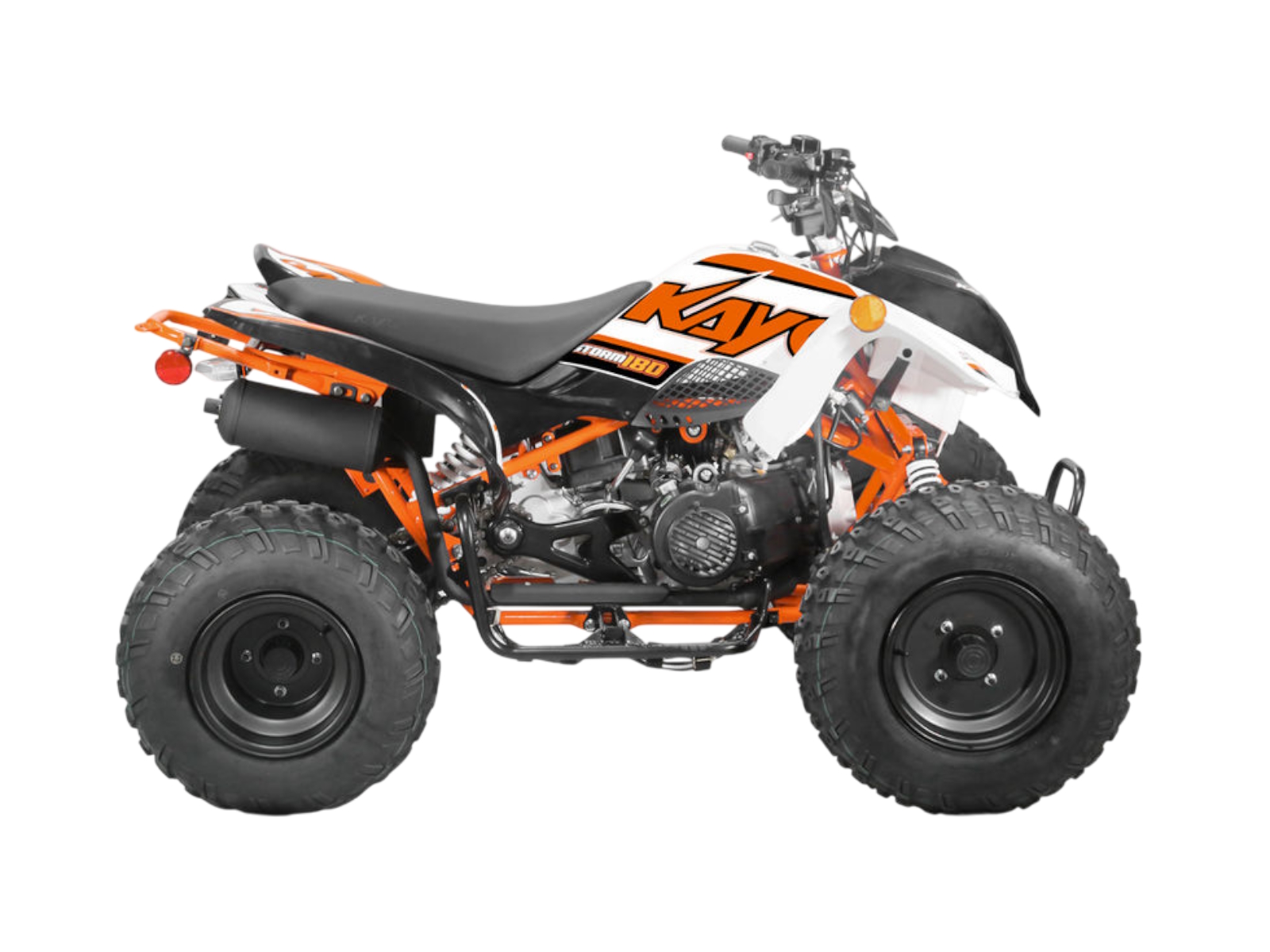 The Storm 180 is a great unit for riders 16 years and older. A low maintenance 4-stroke engine delivers great power and it has a automatic CVT transmission with reverse! The Storm 180 is easy to steer due to the excellent suspension components, yet does not sacrifice ride comfort on the trails and rigged terrain. Combine this engine and suspension with a strong, light weight frame and you have a great ATV suitable for a wide range of riders. The Storm 180 is covered by a 6-month limited warranty.