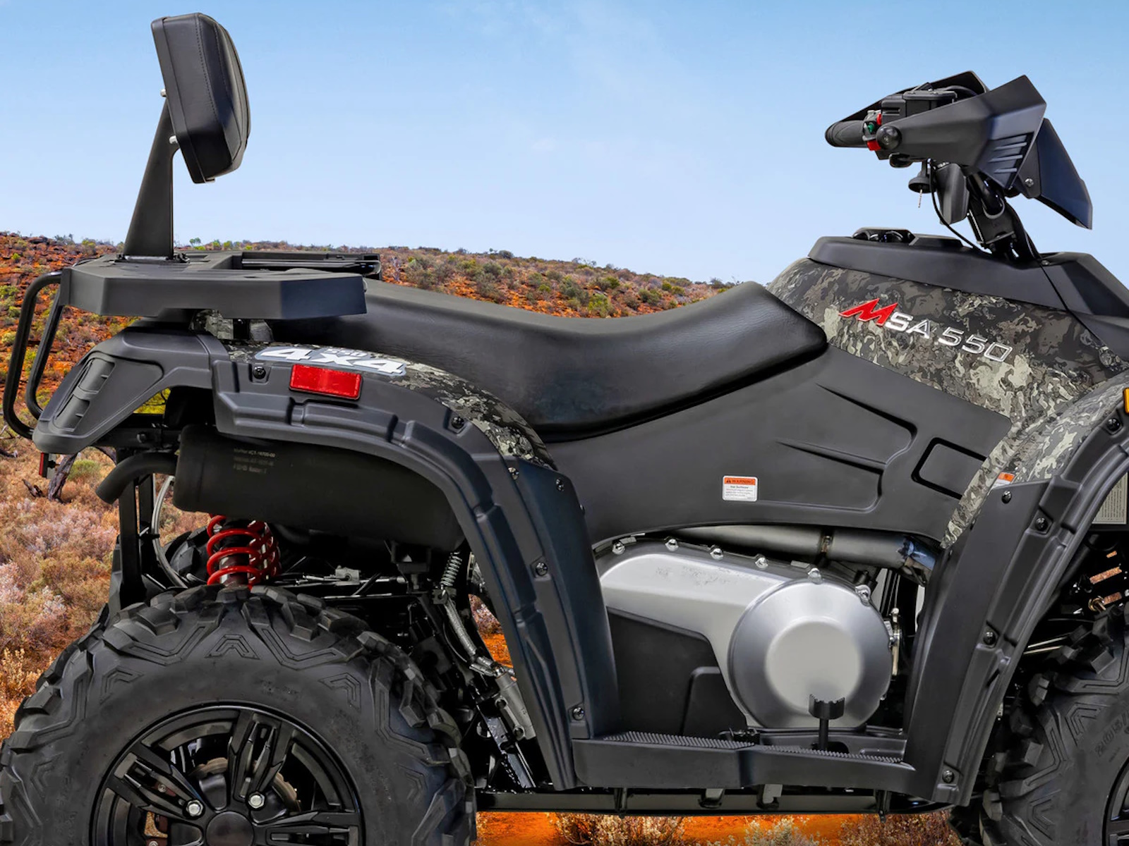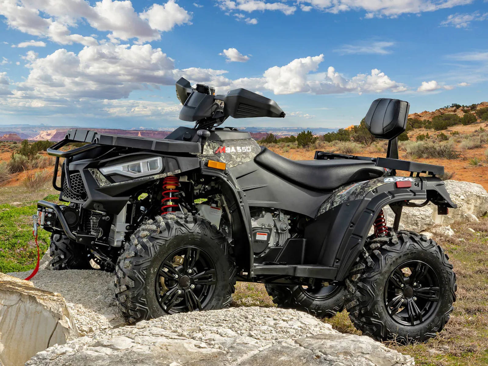 Experience the perfect blend of rugged capability and rider comfort with the Massimo MSA 550 ATV. This powerful 4x4 is built to handle any challenge, featuring a strong 493cc, 33 HP fuel-injected engine for dependable performance and a smooth ride. Navigate the toughest terrain with confidence thanks to On-Demand 4WD, a locking differential, and aggressive all-terrain tires. The MSA 550 comes loaded with premium accessories at no extra cost, including a 3,000lb winch for tough situations, hand guards, and a protective front bumper.