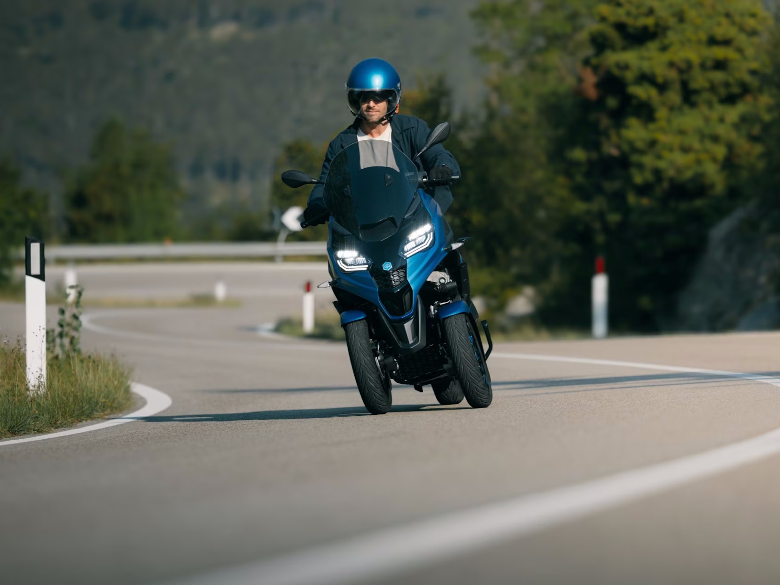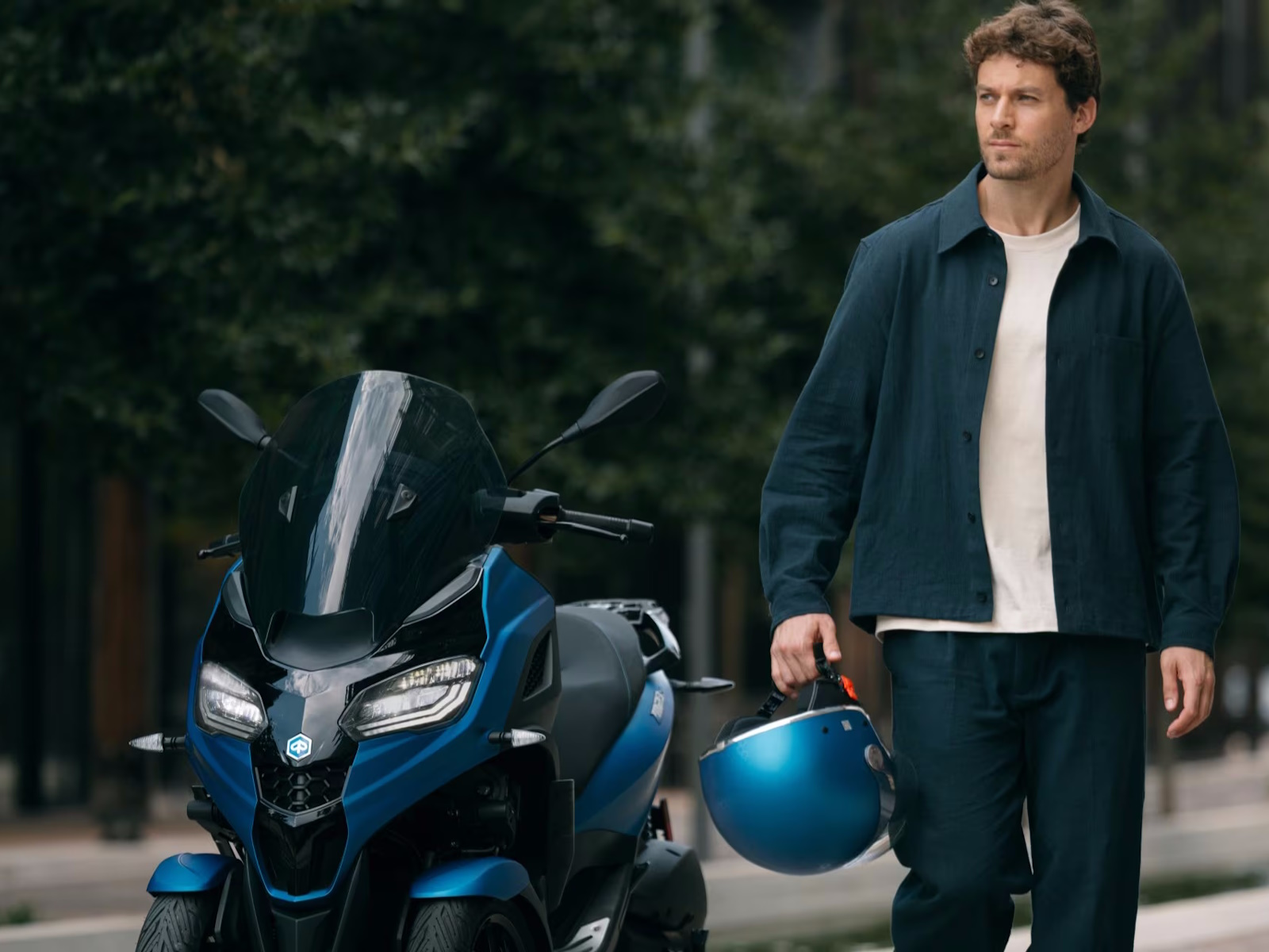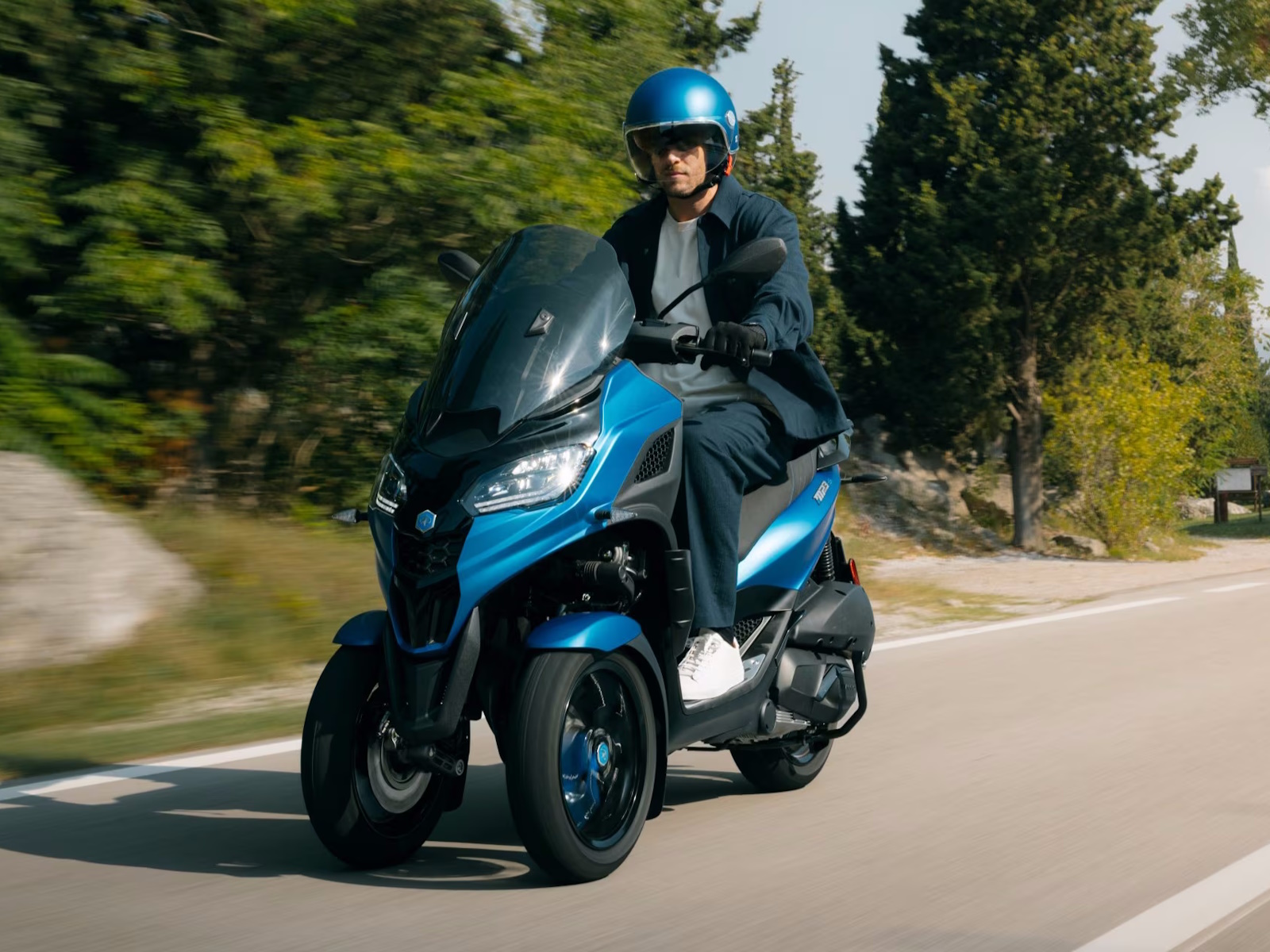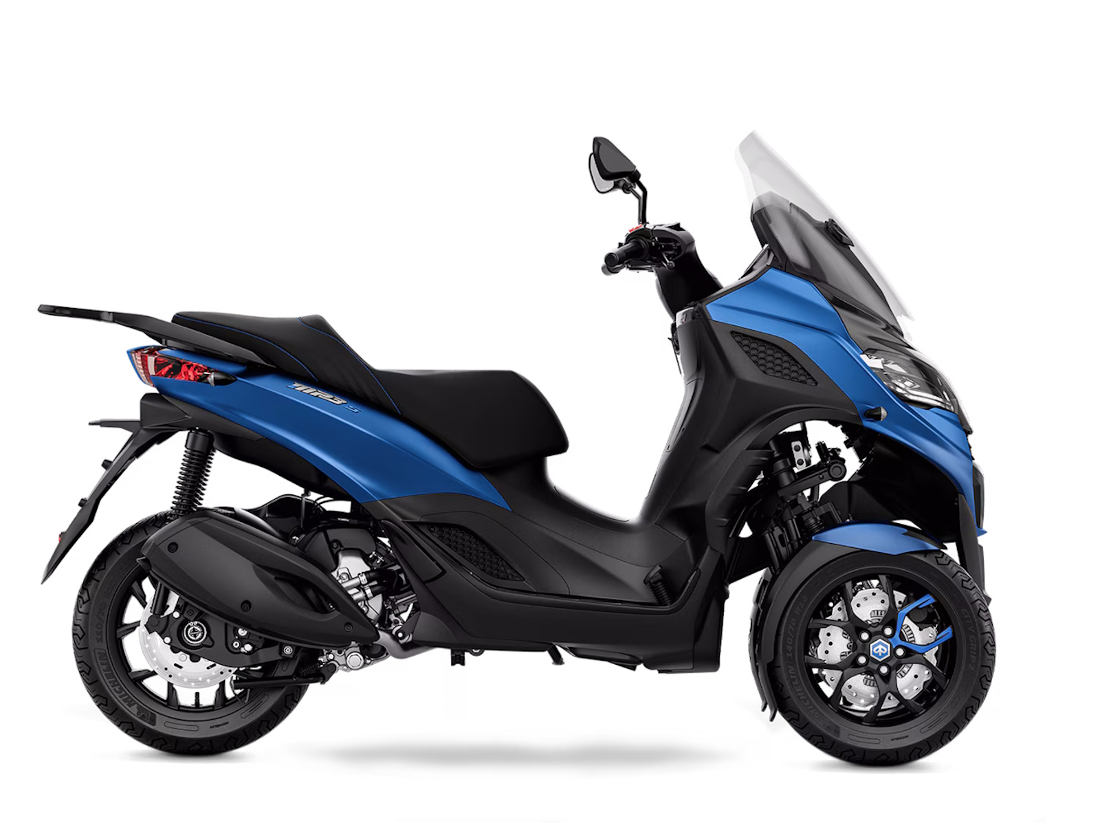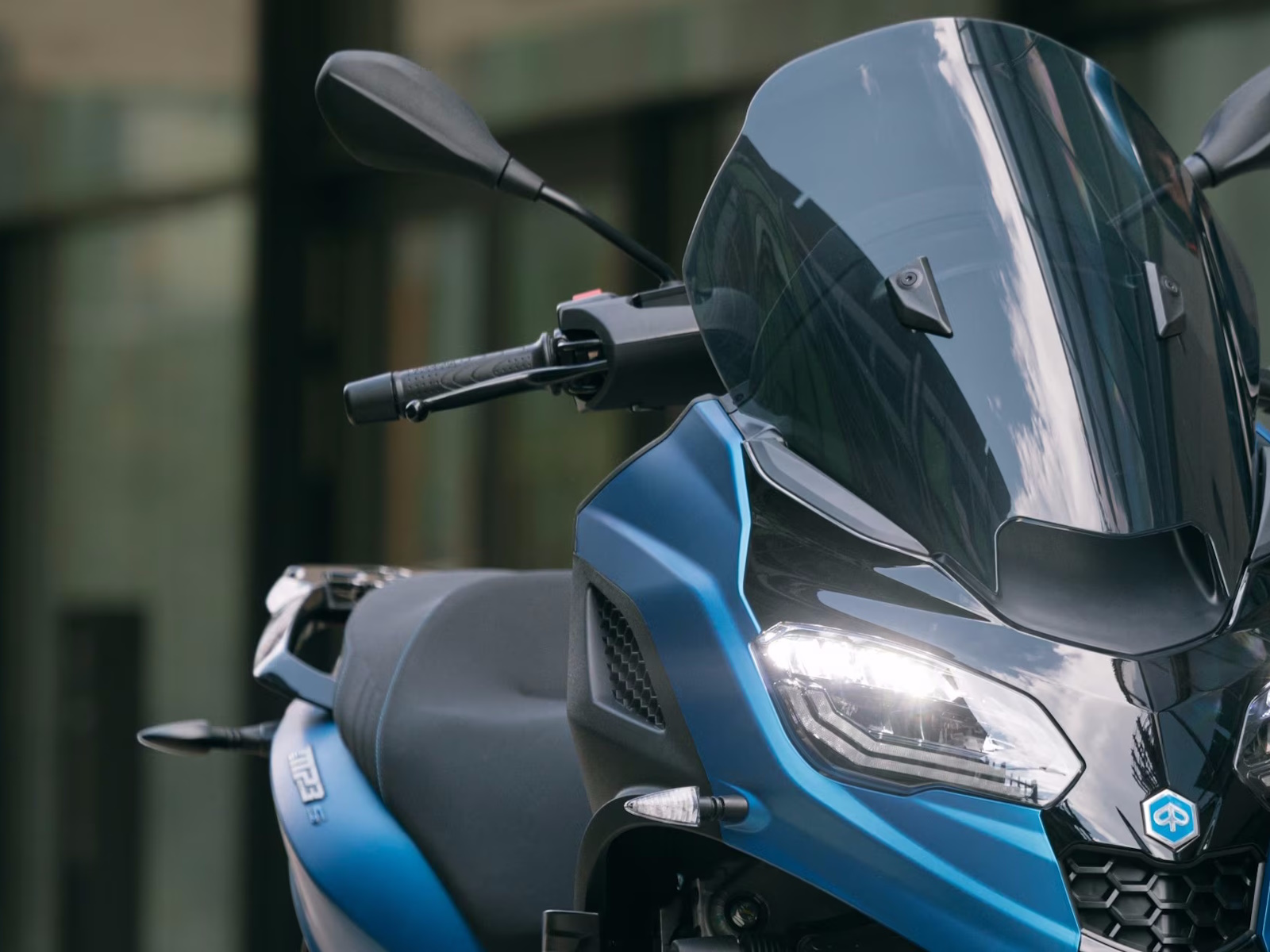 With its modern-shaped front end and colour schemes that showcase its streamlined automotive-inspired design, the Piaggio MP3 310 Sport turns heads wherever it goes. Details such as blue saddle stitching and decals on the black front wheel rims also make an impact, while a mix of matt and glossy black finishes and the footwell with its aluminium insert complete the sporty look. Valid with a B licence, this perfect fusion of elegance and aggression is designed for riders looking for style and performance in a vehicle that is already unique in the world