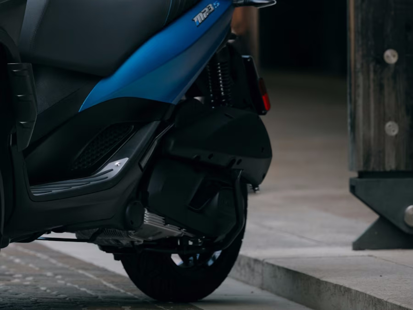 - The split-level seat features the Sport variant’s special contrasting blue stitching and is designed to make it easy to rest your feet safely on the ground. Your passenger will also enjoy a comfortable position, courtesy of fold-out foot boards with aluminium inserts that work perfectly with the scooter’s sporty look.