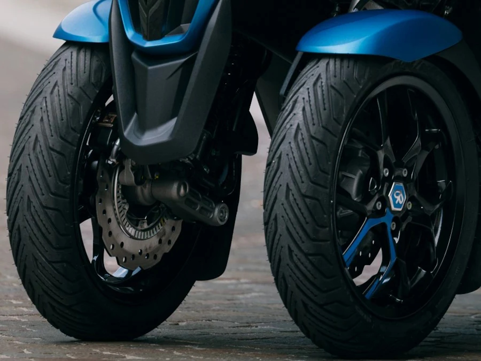 - The Piaggio MP3 310 Sport’s standard features include ASR traction control for perfect acceleration control on every type of road surface. The 13” dual independent, tilting front wheels are fitted with 258-mm wave brake discs while the rear has a diameter of 240 mm. ABS anti-locking is active on all three wheels, ensuring safe, efficient braking.