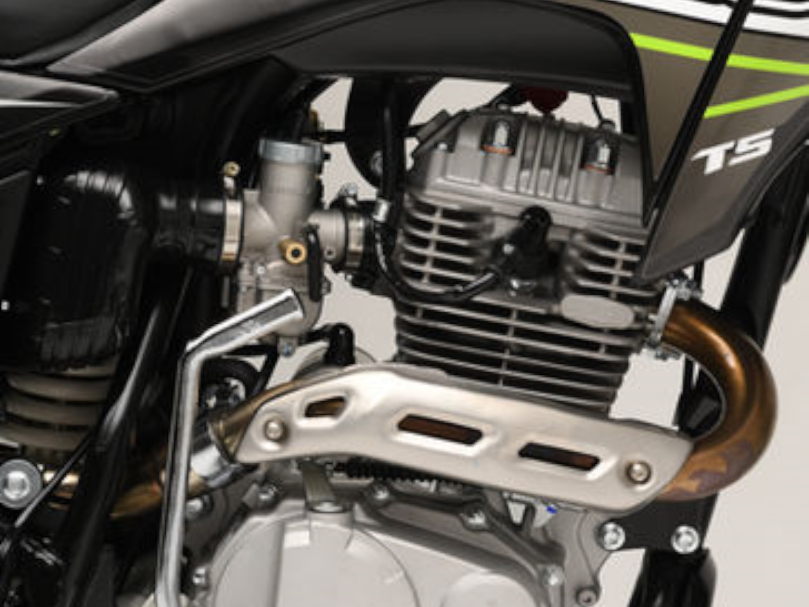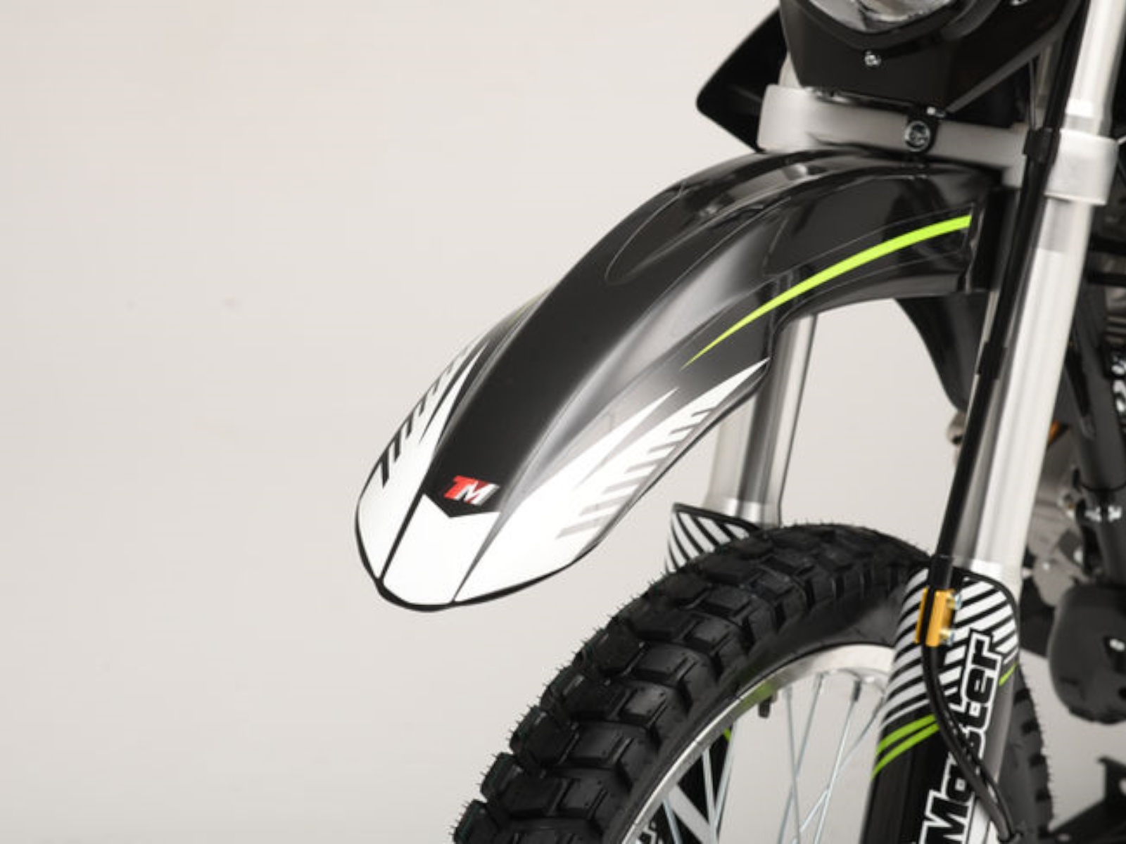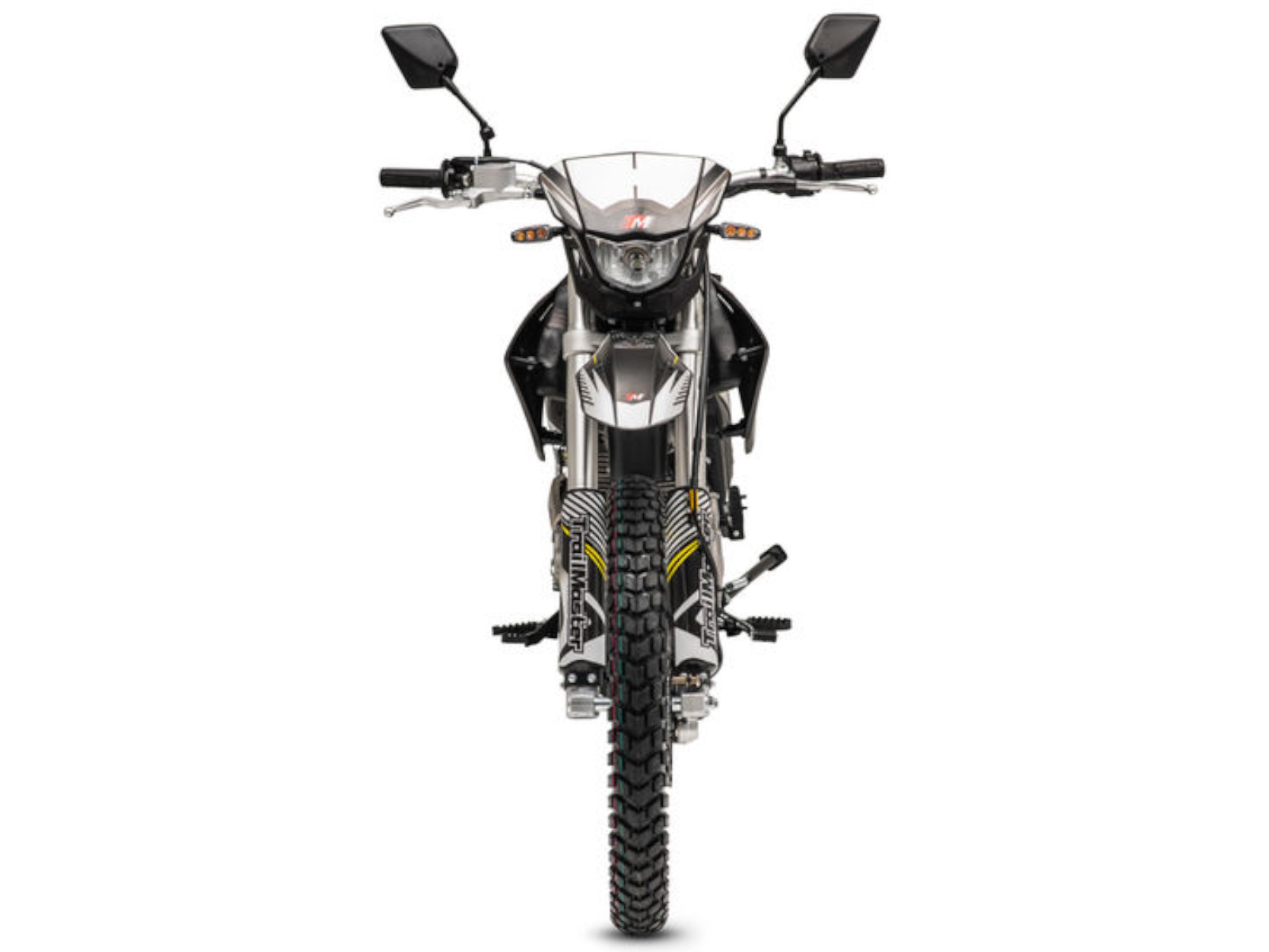 The TM T5‐250 is a great ECONOMY full size (DUAL SPORT) dirt bike. It is has both a kick start and a “ELECTRIC START”. It has a high performance 223cc 4 stroke 16hp engine with kick start and a top speed of around 57 MPH and a seat height of 35.7”. The T5 features a 5 speed manual transmission with front & rear disc brakes, inverted front shock, and a lightweight steel tube frame! This is sure to be a HOT seller! The bikes full on motocross ergonomics with a 21” front / 19” rear wheel and race suspension system, make handling feel natural and unforced, and help it navigate over almost any type of terrain. The Headlight, Digital Dashboard, Rear View Mirrors, Turn Signals, horn, license plant mount and brake lights comes standard on the T5. Electronic Digital CDI ignition makes key and kick starting effortless, keeps the bike running smoothly in all gears and provides a broad, even power band. And at only 259 pounds, the 223cc engine can propel the motorcycle to speeds of more than 57 miles per hour. Contact STATE & LOCAL DMVs about your areas specific registering requirements.