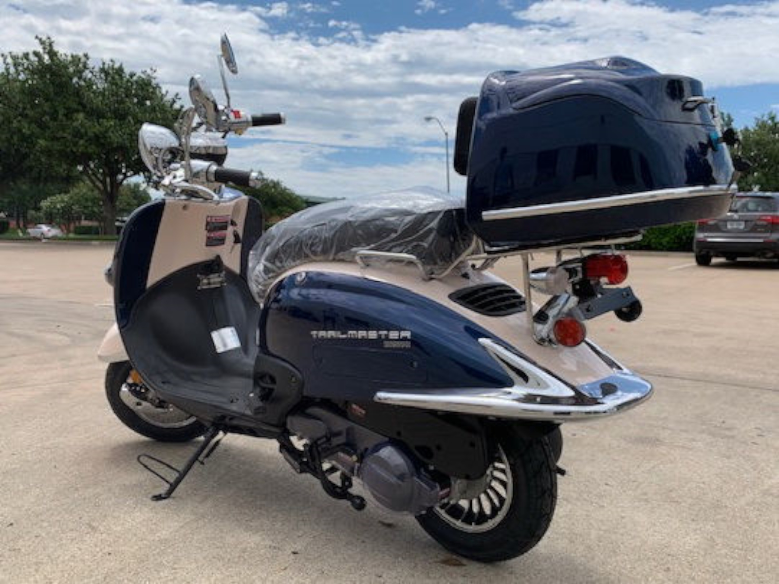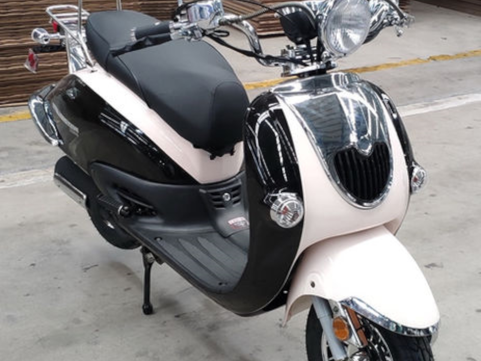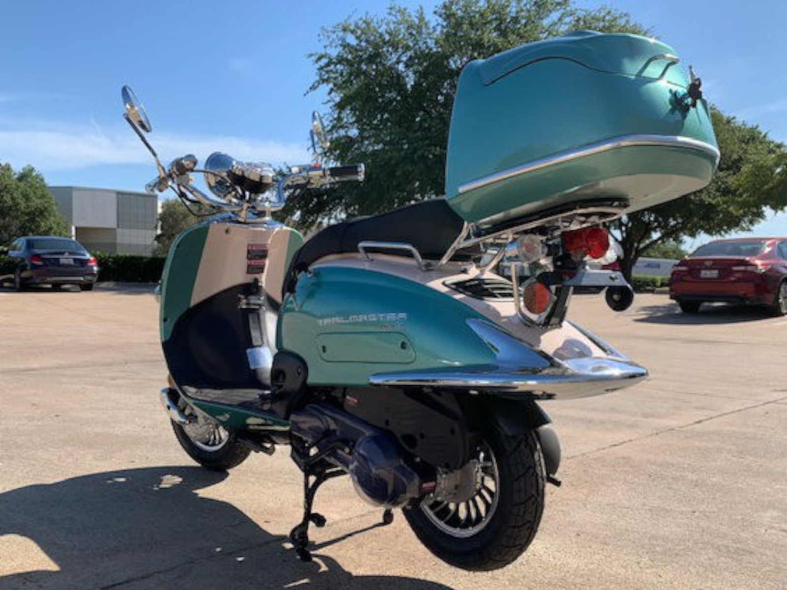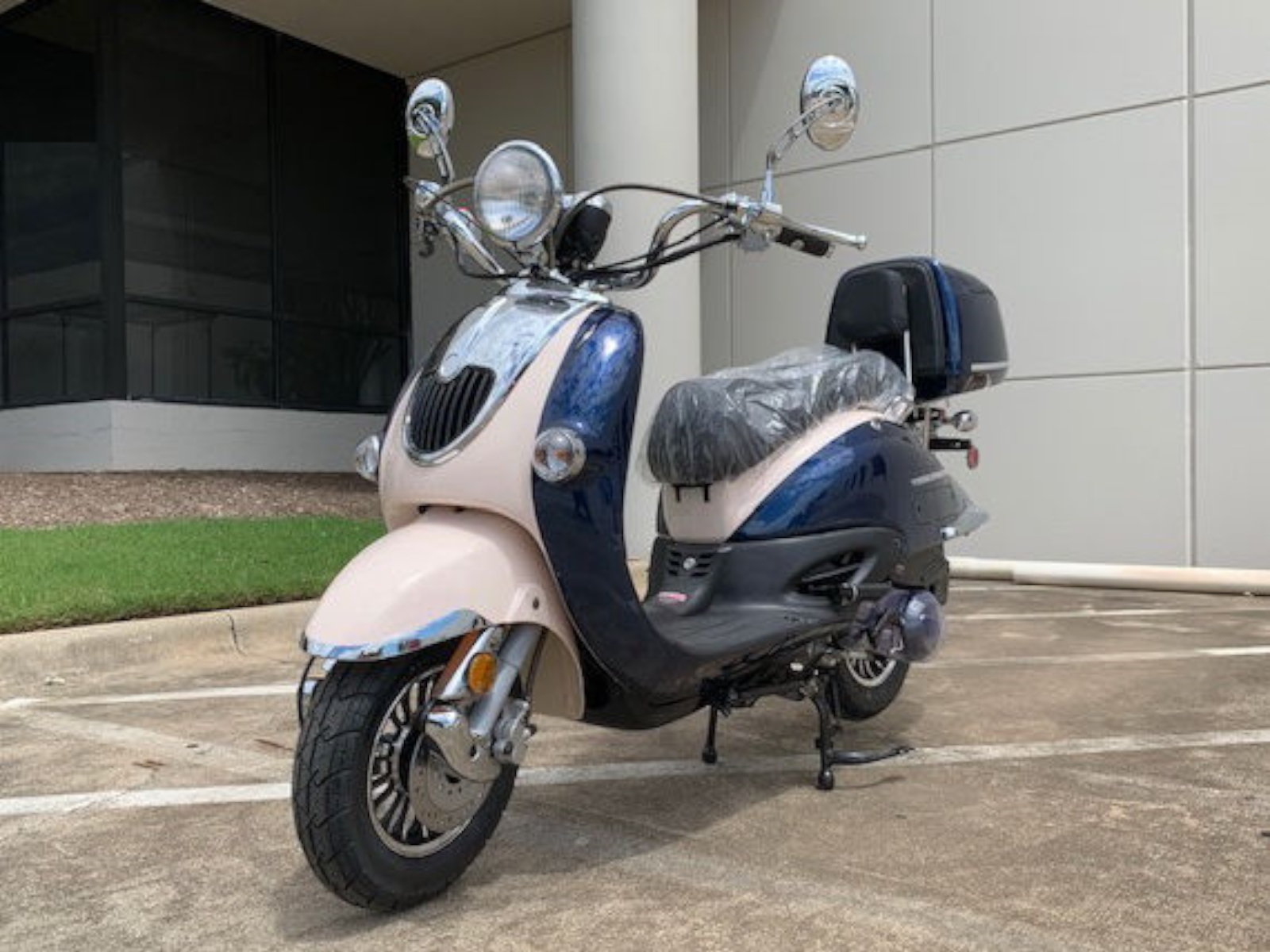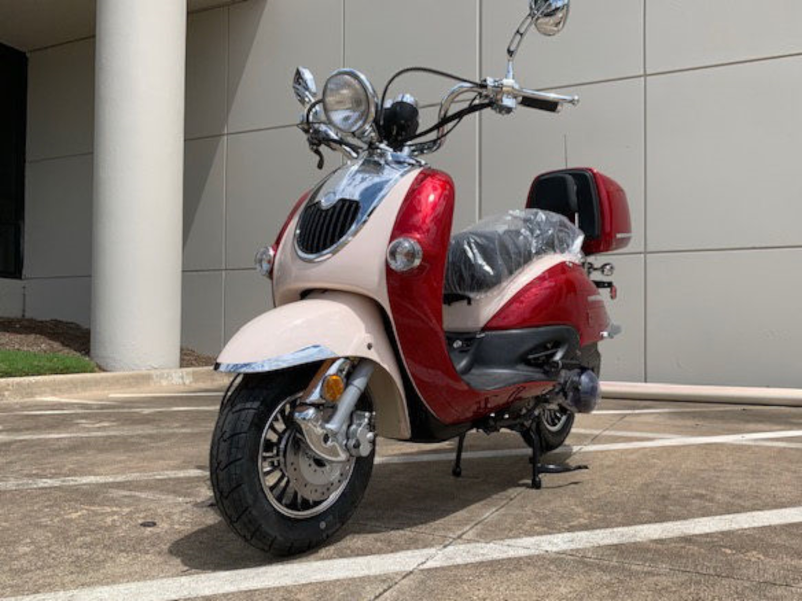 The Sorrento 50A has a fantastic two tone retro stylish look, matched color rear trunk, high quality chrome review mirror and etc. This model comes with a 50cc (2.95hp) engine w/ kick and electric start that has a max speed of 51 mph! Matching rear luggage trunk for books and supplies…this model is perfect for the college kid or for anyone to speed around town! Best of all, it comes with 1 year 10,000 miles engine warranty!