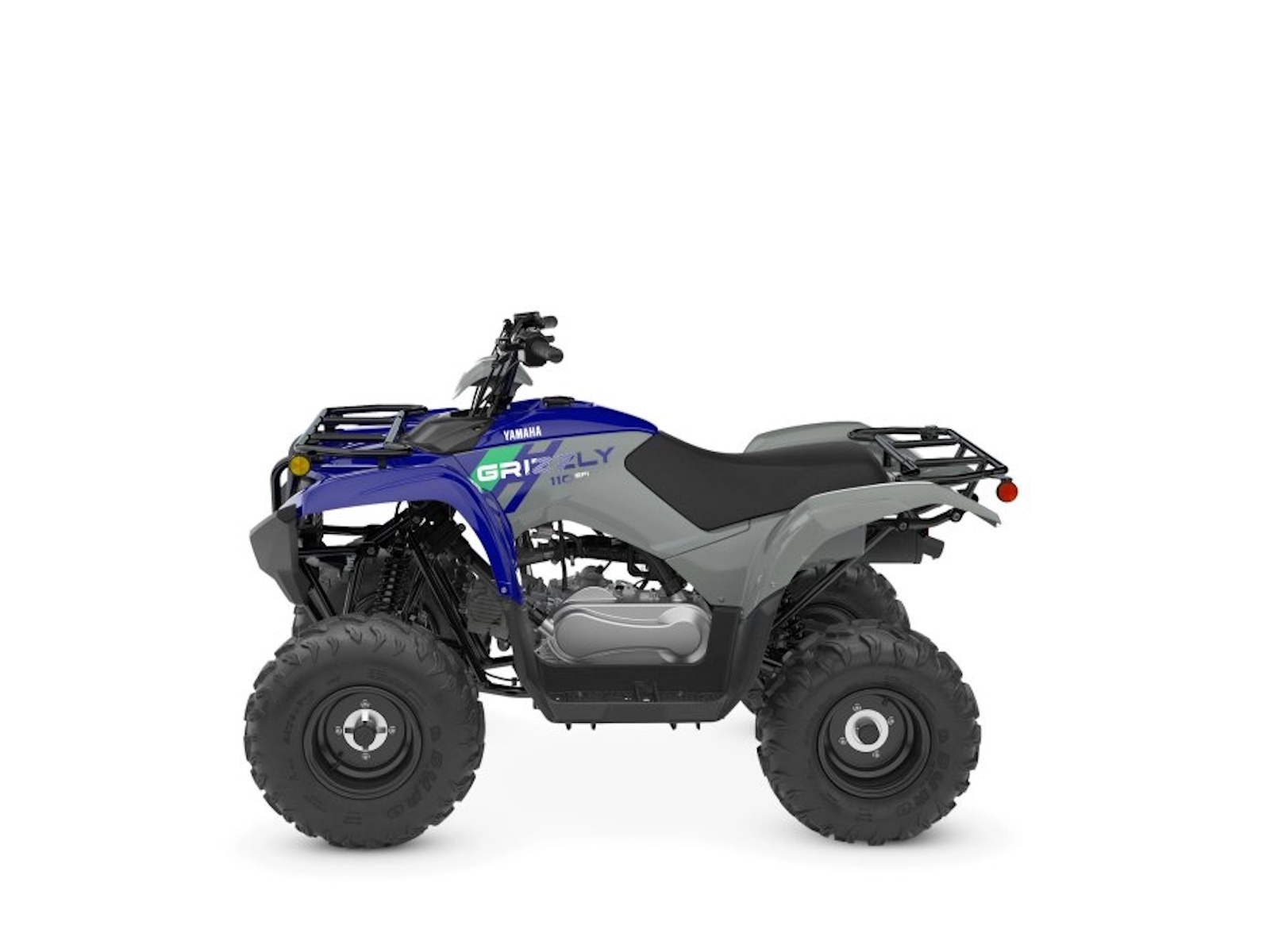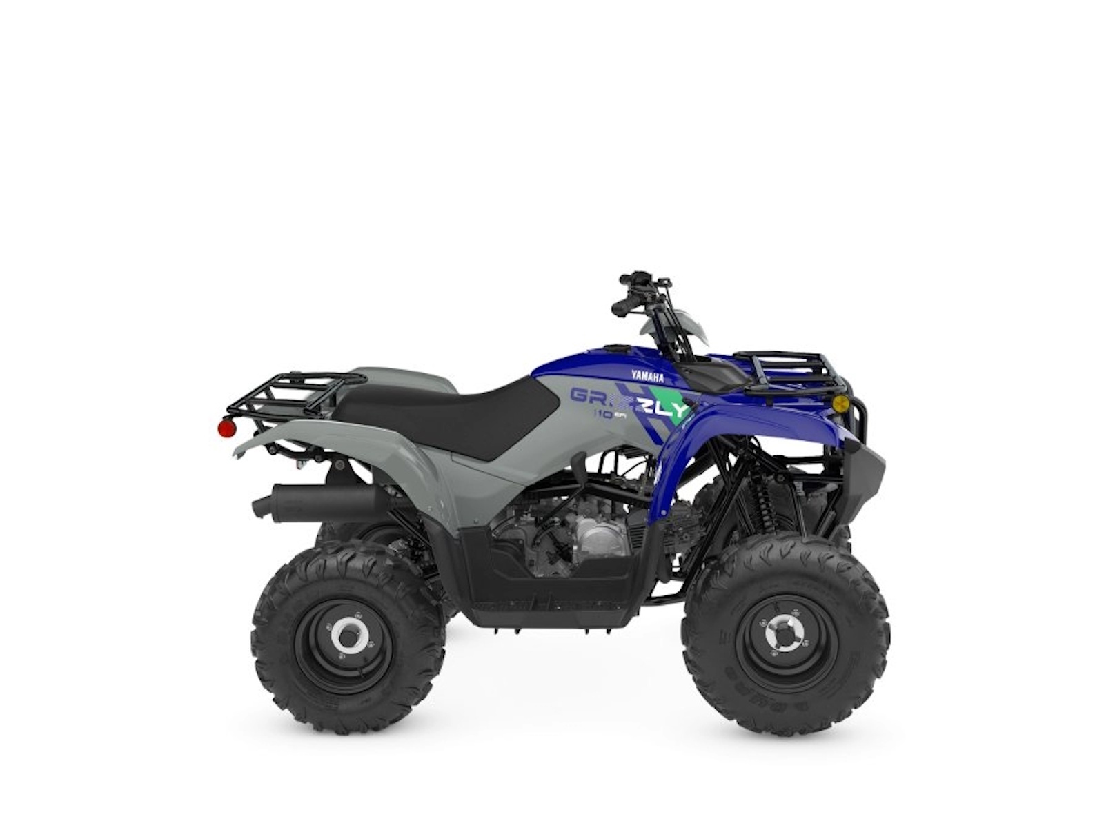 Proven Off‑Road performance and Grizzly‑styling with a potent 112cc engine, advanced fuel injection and CVT transmission, the Grizzly 110 is perfect for trail riders age 10 and up.