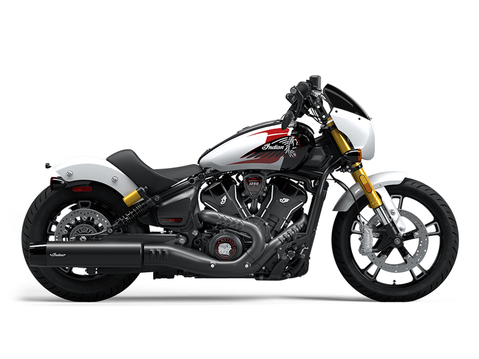 2025 Indian Motorcycle 101 Scout Ghost White Metallic with Graphics- 7108