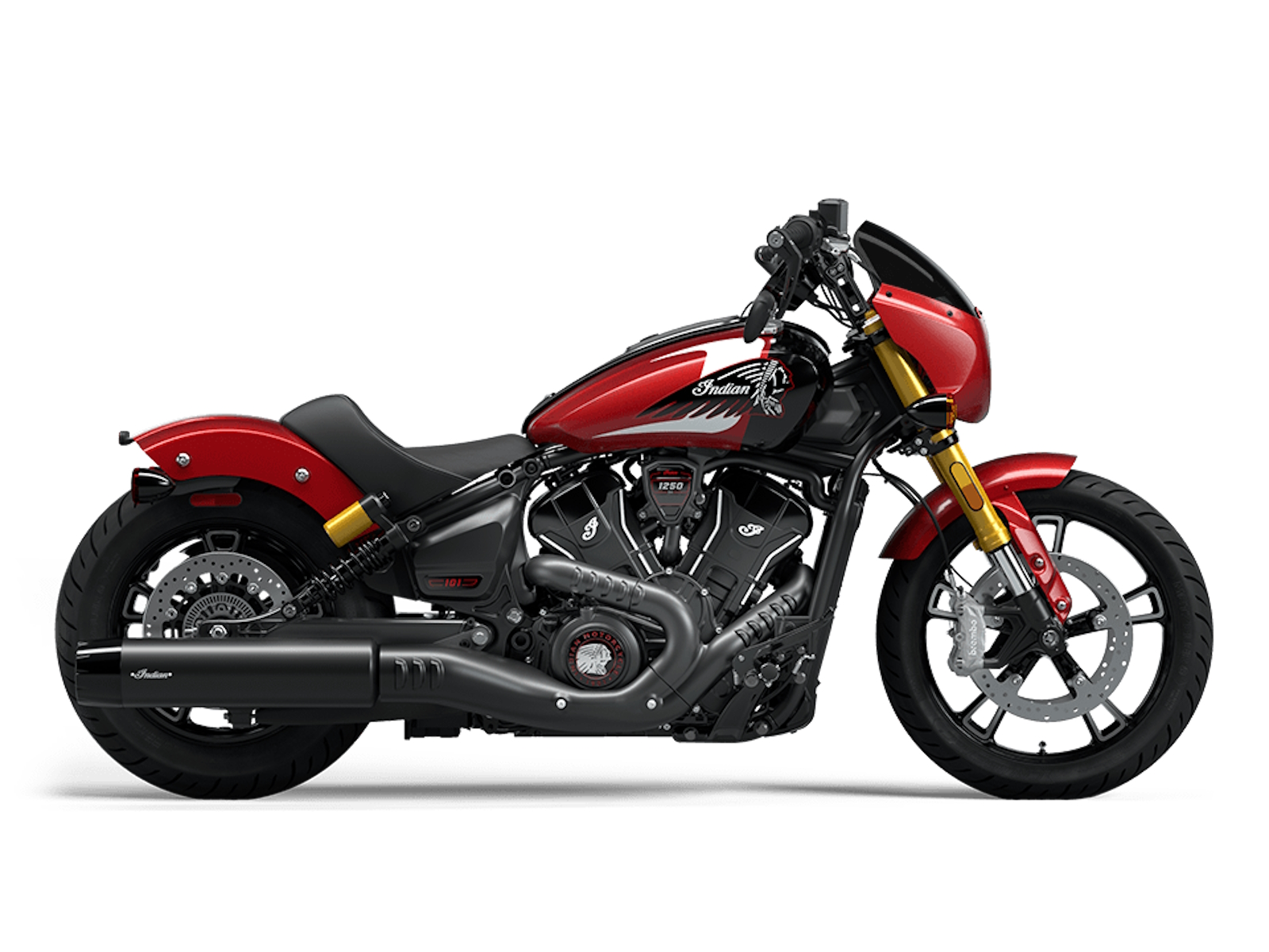 Rooted in history as one of the greatest motorcycles ever made, the Indian 101 Scout is purpose built to be the highest performance Scout we’ve ever offered. With, color-matched quarter fairing, inverted adjustable front forks, dual disk Brembo® brakes and adjustable piggyback rear shocks, the Indian 101 Scout is packed with premium components that make a statement about your ability to go fast. Exacting attention to detail throughout completes the look, with 101 Scout badging and exclusive paint and graphics that will turn heads if anyone can catch it.