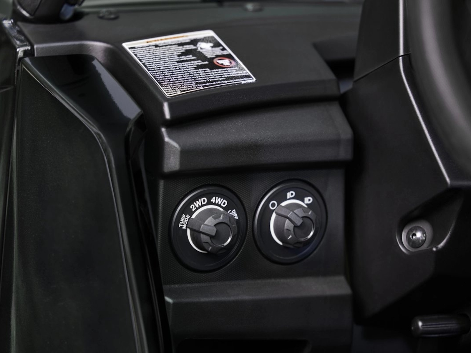 - On-Command four-wheel drive system includes Turf Mode for unlocking rear differential to minimize turf damage.