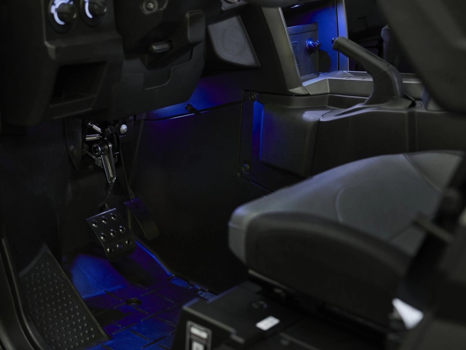 - Interior light package includes blue LED lighted switches, floor lights, console lighting along with a blue-backlit meter.