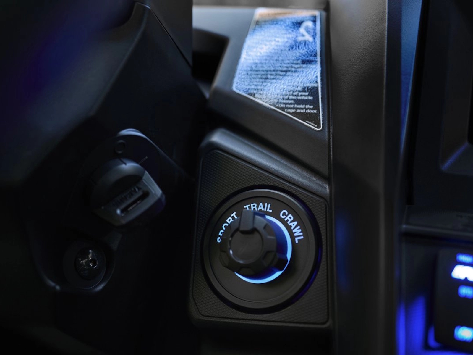 - High-quality automotive-inspired cockpit includes soft touchpoints, USB port and adjustable center-mount rearview mirror.
